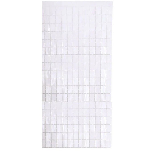 Large Square Foil Curtain backdrop - White - for Simple Birthday Decorations at Home