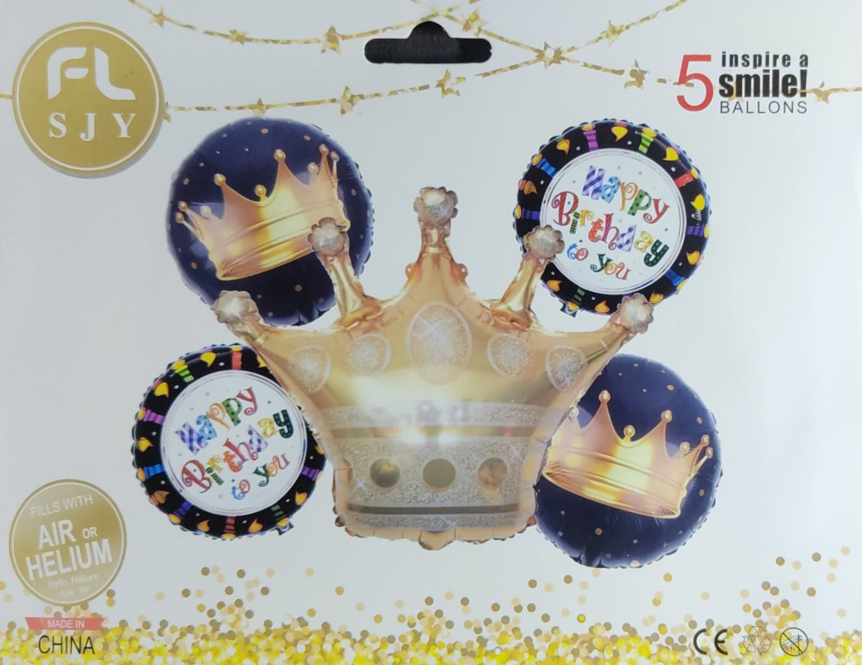 Gold Crown Foil Balloon - 5 pieces set for Simple Birthday Decorations at Home